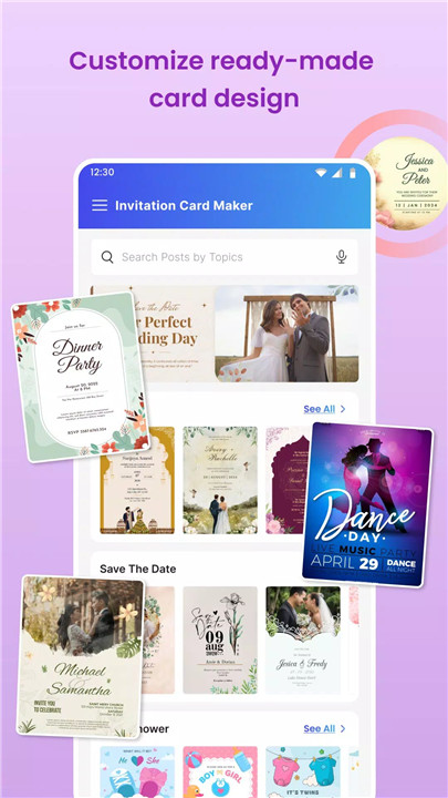With our Birthday Card Invitation Maker, you can unleash your creativity. Choose from a myriad of templates, customize colors, fonts, and layouts, and even add your own photos to create invitations that reflect your unique style. Whether it's a formal wedding invitation or a playful birthday card, our app offers versatile options to suit any occasion.