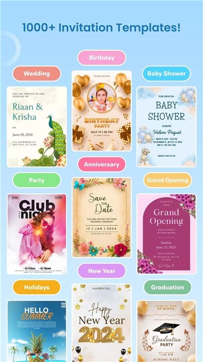 Say goodbye to traditional paper invites, and say hello to this intuitive online invitation maker! Similar to popular platforms like Paperless Post and Greetings Card, our app simplifies the invitation creation process.