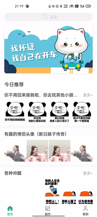 进入DIY制作功能,上传图片、编辑文字或表情后保存即可。
