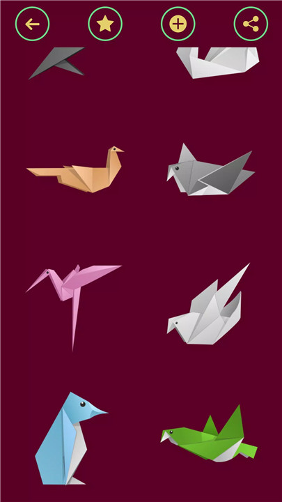Origami Birds From Papers is an engaging mobile application designed to teach users the art of creating intricate paper birds through easy-to-follow tutorials. From the graceful swan to the colorful parrot, each bird is meticulously represented with detailed step-by-step diagrams. Explore the elegance and variety of nature's winged wonders right from your device.