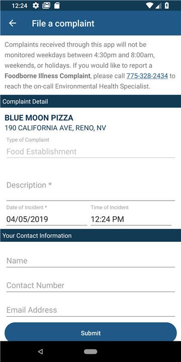 • Access inspection reports for all licensed food establishments in Washoe County.