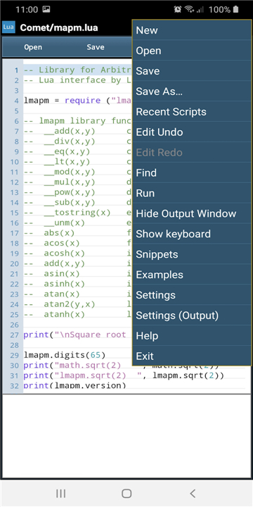 • It features a fully integrated Lua scripting engine, enabling users to write, execute, and test Lua code directly on smartphones and tablets.