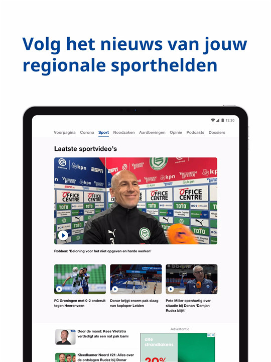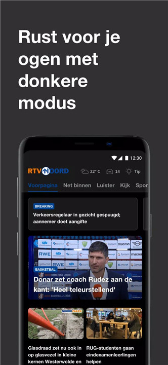 The RTV Noord app delivers the most important news and videos directly from Groningen, updated throughout the day. Users can access the “Just In” page for a quick glance at the latest headlines, keeping them in the loop with real-time updates.
