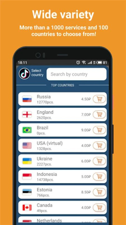 Simply select a service, purchase a temporary number for your desired country, use it during registration, and receive the SMS verification code in the app.