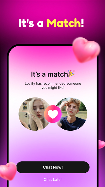 • Our intelligent algorithm connects you with individuals who truly resonate with your passions, values, and energy, paving the way for more meaningful interactions.