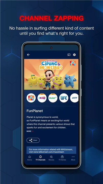 MAXStream offers a vast array of local and international movies, series, and live TV channels. You can also enjoy exclusive MAXstream Originals that are not available anywhere else.