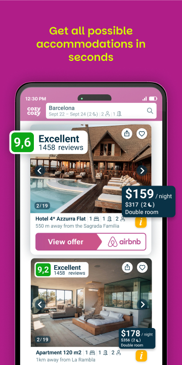 • Cozycozy is the only platform that lets you explore every possible accommodation option in real time.