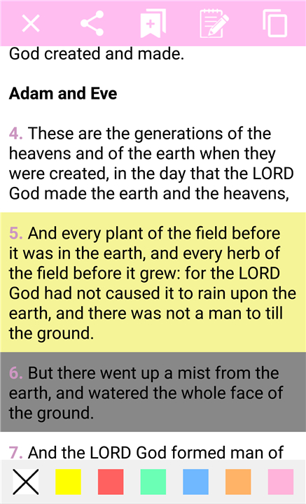 • Personalized reading: Highlight verses, mark favorites, and take notes with custom colors.