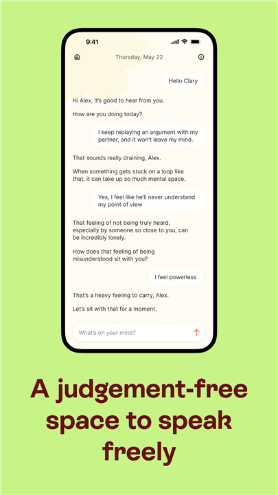 • Clary is designed for self-help and emotional wellbeing, not as a replacement for therapy or medical advice.