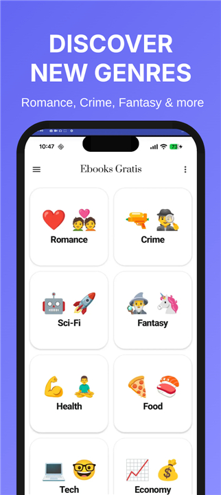 • Category browsing, including romance, crime, fantasy, non‑fiction, and more.