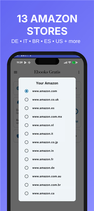 • Select your preferred Amazon marketplace, such as Amazon.de (Germany), Amazon.it (Italy), Amazon.com.br (Brazil), Amazon.es (Spain), Amazon.com (United States), and others.