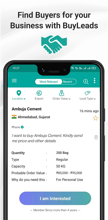 • Find BuyLeads fast by simply searching by product name.