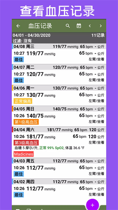 为了满足不同用户的需求,应用还提供了标签功能,用户可以为每一条记录添加个性化标签,方便分类查看和管理。通过这种方式,您可以更好地掌握自己的健康变化,并随时了解可能的风险。此外,应用也支持备份和恢复功能,确保您的健康数据不丢失。