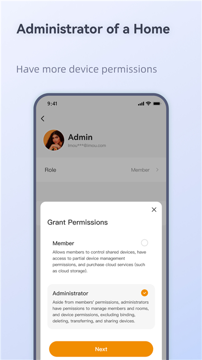 + You can decide whether they can only view the live feed, control settings, or review recorded history.