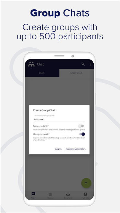 A: Datafree means you can use selected features of the app without using your mobile data or airtime, as long as you are connected to one of the supported South African networks. Other features, such as video calls or sending media files, will require data, but you’ll always be warned before this happens.