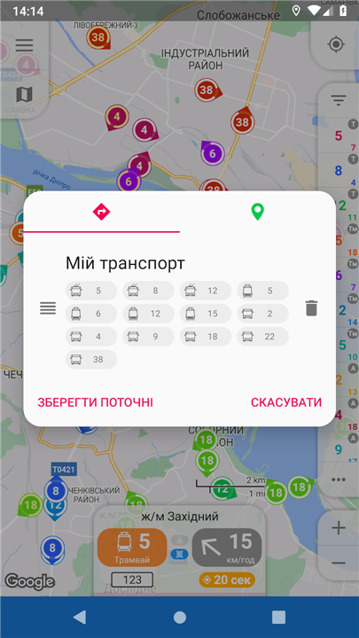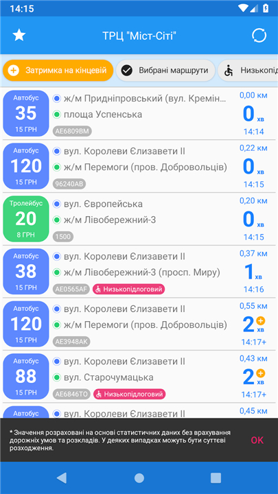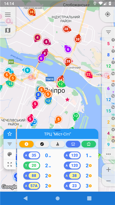 - A long click on [My location] button opens transport arrival forecast for the nearest stop